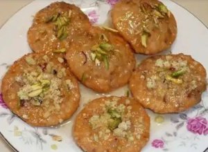 6. Break the top of the kachoris and pour in 1 big spoon of saffron syrup before serving.