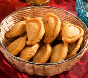 Mix ghee with flour, add enough water to make a soft pliable dough. Take a morsel sized ball of dough, roll into a 4″ round. Place same sized ball of filling in centre, life all round and seal. Reroll carefully to a 6″ diameter round. Roast on warm griddle till golden brown.